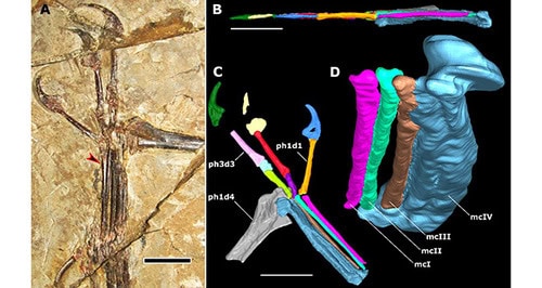 Fion Waisum Ma, co-author of the study and PhD researcher at the University of Birmingham, said: “The fingers of ‘Monkeydactyl’ are tiny and partly embedded in the slab. Thanks to micro-CT scanning, we could see through the rocks, create digital models and tell how the opposed thumb articulates with the other finger bones.