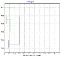 | Figure 4: The dendogram chart displayed in the comparison tab which clusters similar batches together in this case according to the solidity parameter |