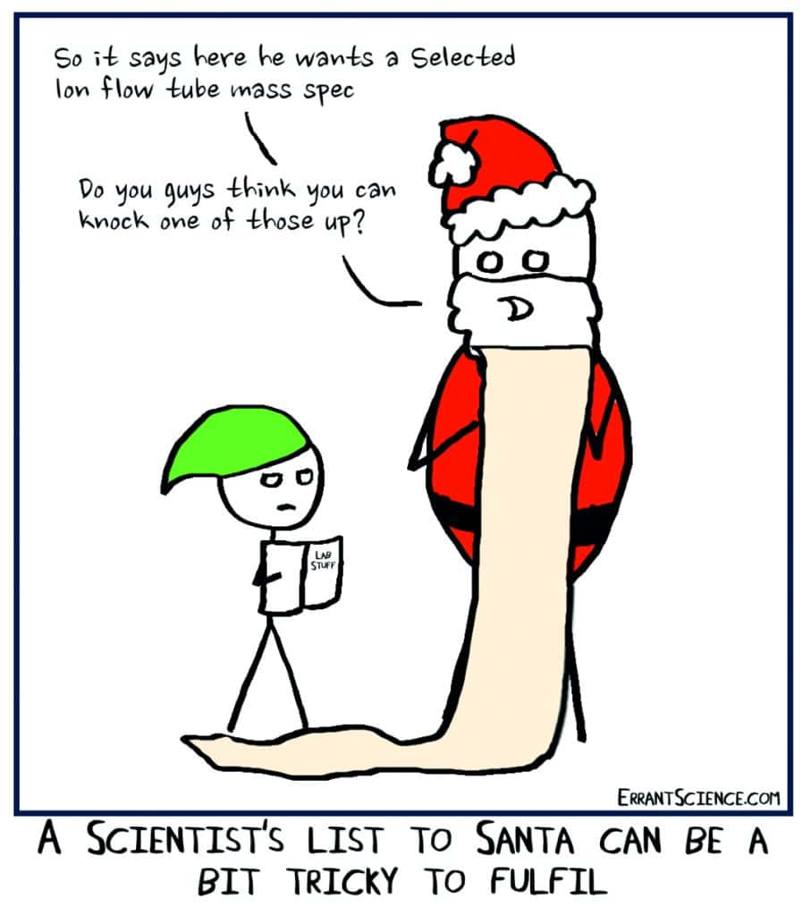 Offensive solvents, weaponised pippette racks and lab siri – Santa has his work cut out as Dr Matthew Partridge puts together his festive, lab-based chrimbo wish list!