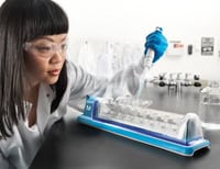 Recent innovations in sample processing such as the Samplicity filtration system (Figure 2) allow multiple samples to be processed in parallel, offering a throughput capacity that is well-aligned with the needs of most labs. The system allows up to eight samples to be simultaneously vacuum filtered directly into LC vials in seconds.