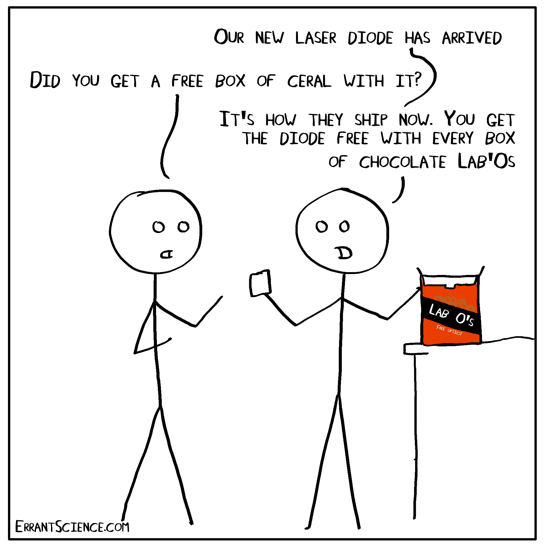 Since then, I've been sent a metric ton of random sweets with orders. The parts for my laser always arrive with a packet of dried fruit and nuts and a stick of gum (presumably to get nut bits out of my teeth). When I was setting up my new lab a while back, I was ordering so frequently that I got enough boxes of snacks to completely cover a desk. My kids had a very varied sweet diet that year.