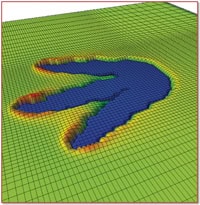 Computer model of a three-toed dinosaur track credit The University of Manchester |