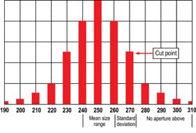 A second misconception is that a sieve will cut a particle size distribution according to the average aperture size. In practice, the cut point occurs very close to the upper standard deviation. It is therefore better to use a sieve slightly smaller than the nominal size if it is being used in precision separation processes.