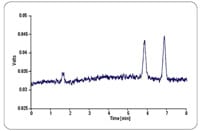 Figure 2: Analysis of 50ng each of glucose and sucrose using the Agilent 1200 Series ELSD at 40°C and 1mL/min flow