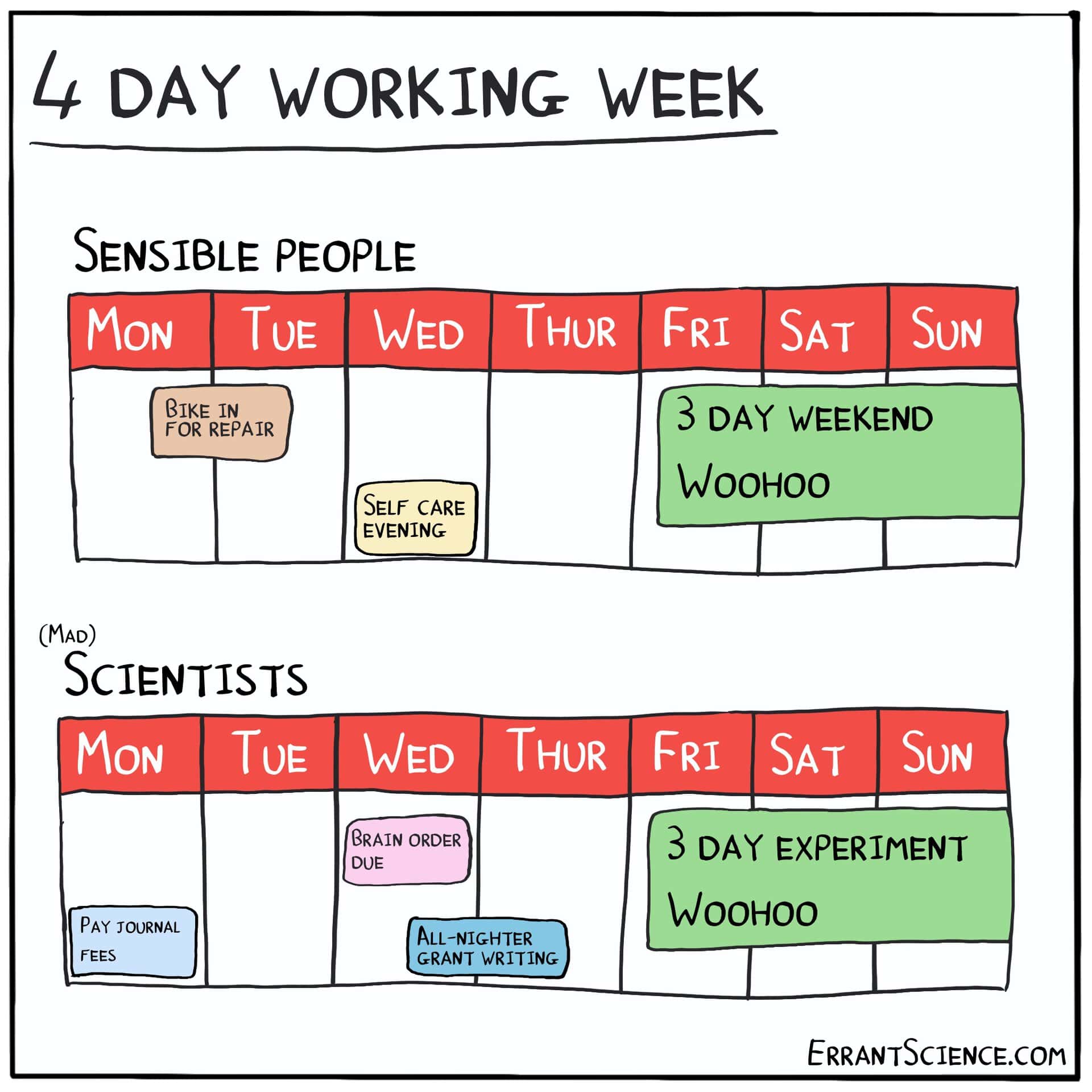 For the weekend experiment, a four-day working week would be more like the introduction of an extra experimental day. Rather than reducing the output of data we might see a lot more papers with experiments run for 72 hours rather than the traditional 48. So, bring on the four-day working week as longer experiments is more data and I’m pretty sure more data is always better, right?