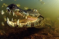 The Piranha-eater – yacare caiman surrounded by piranha by Marcelo Krause. Highly commended in the Underwater World Category |