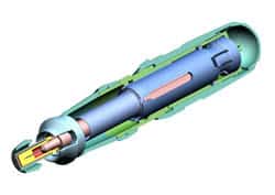 Internal workings of the auto-safety injector. The needle remains hidden at all times and optimal insertion depth ensures a comfortale delivery.