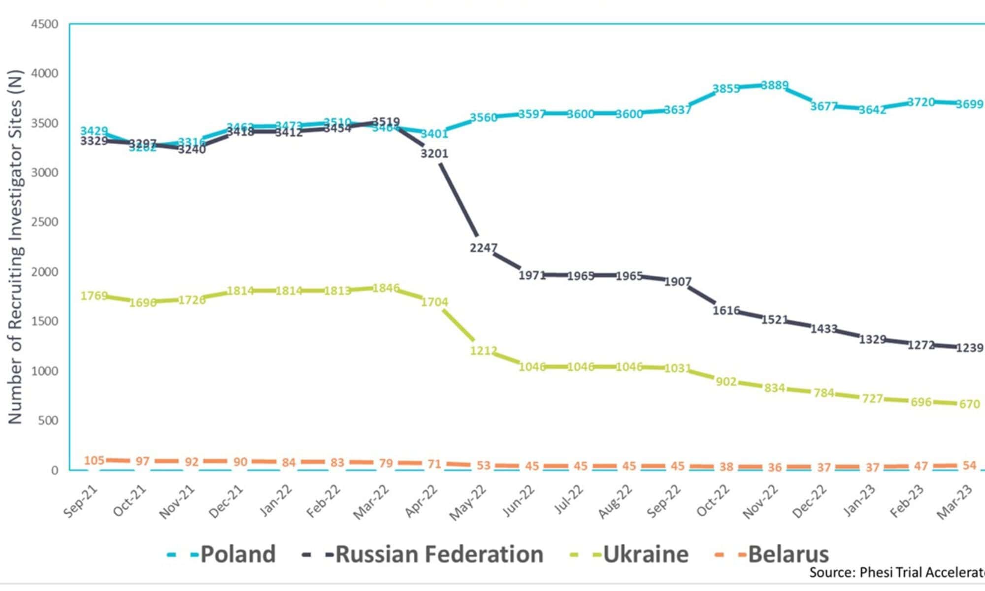 Phesiโs third analysis of clinical development in Ukraine, Russia, Belarussia and Poland ย since the September 2021 shows only the latter country is maintaining its scale of contribution.ย ย