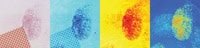 Figure 10: A single set of fingerprints shown after various data treatments. From left to right; RGB image; image at 630 nm; MNF; nCDA