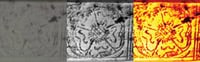 The RGB image shows a main print and a very faint secondary print to the left. This faint print starts to become visible as the contrast is enhanced using 630 nm (orange) illumination. Transforming with a Minimum Noise Fraction analysis then automatically contrasts regions of interest, and finally normalised Canonical Discriminant Analysis shows the greatest contrast.