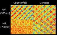 Multispectral imaging techniques can also be used to identify counterfeits through the analysis of their packaging. Although visually it may be difficult to detect counterfeit packaging it is a trivial matter to automatically compare the shape and size of characters, trademarks, company names and logos on good/bad packaging, and specialised inks and texture effects on authentic packaging are simple to detect (Figure 5) when imaged. Subtle changes in size, shape, colour, and markings can all be combined and used to automatically detect counterfeits often without removing the product from the original blister packaging.