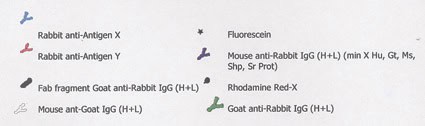 Fab fragments of affinity-purified, secondary antibodies are used to sterically cover the surface of immunoglobulins for double labelling primary antibodies from the same host species, or to block indigenous immunoglobulins on cell or tissue sections.