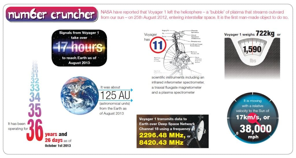 NASA have reported that Voyager 1 left the heliosphere - a 'bubble' of plasma that streams outward from our Sun - on 25th August 2012, entering interstellar space. It is...