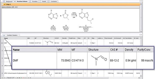 Symyx Notebook's chemical intelligence enables scientists to easily design and share single- and multistep, linear, and convergent reactions - and register all of the components and details of the transformation automatically to a corporate database.