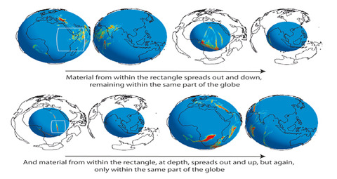 The scientists combined spherical numerical computer models with the most up-to-date information of how the plates have moved over the last 200 million years. These included ‘mathematical’ particles placed at different lengths of the modelled mantle. Having tracked where these particles flowed, the researchers then examined chemical isotope evidence from past ocean basins.