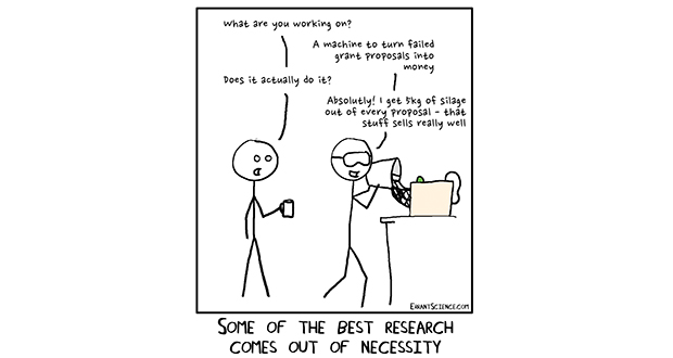 I realise that scientists like to compete but maybe, for just a bit, we could actually try helping each other out and solving both problems at once by sharing. I’m suggesting that maybe we could help each other out with services, lending equipment, and maybe even some materials. So as scientists and lab techs around the country, let’s agree to quietly help each other out by running samples and pooling equipment for the good of actually getting some work done. This way, rather than waiting for a big grant to come in so we can all have identical fancy equipment.