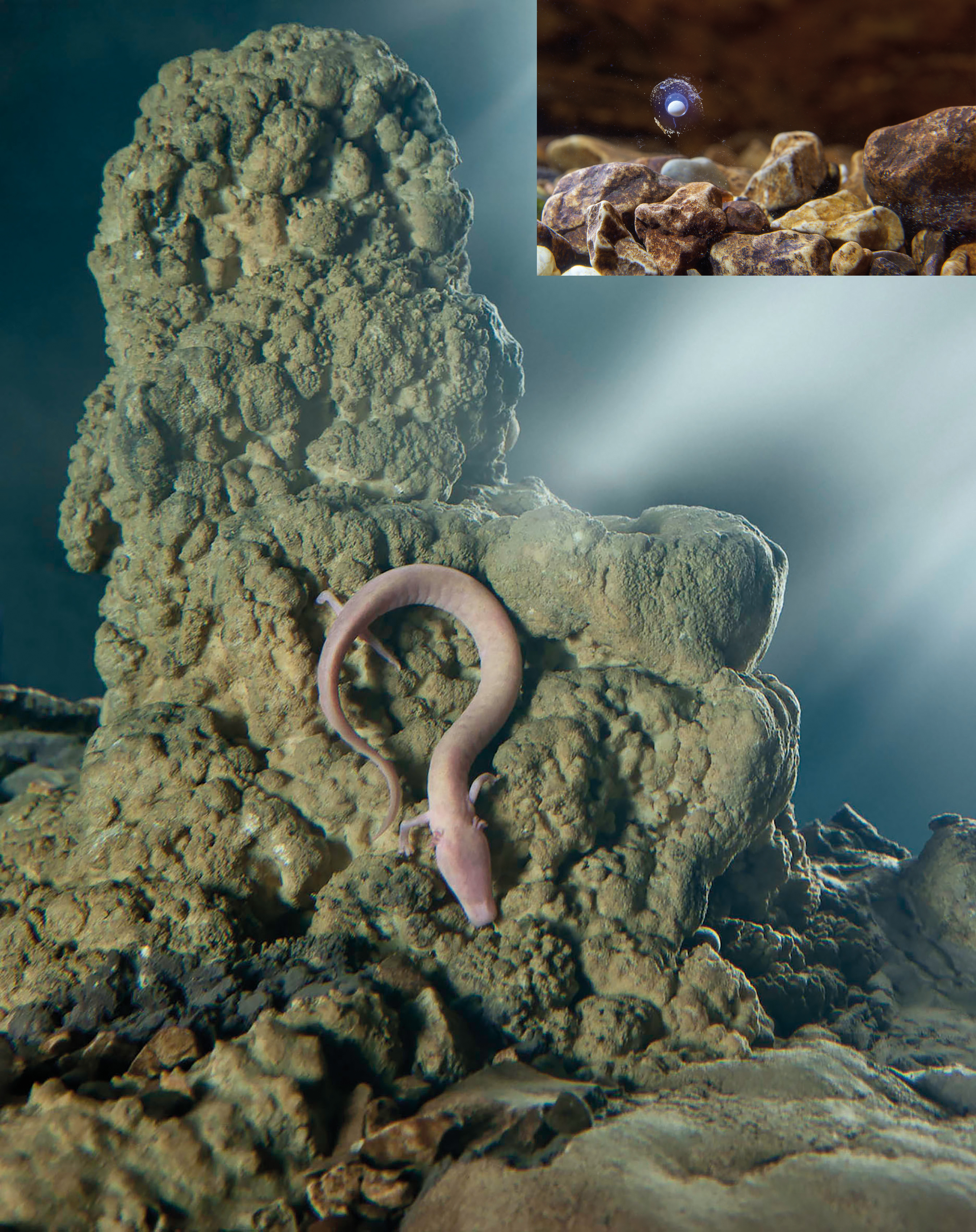 Cave biologists have announced that one of the world’s most mysterious cave-dwelling creatures has laid an egg, completing a cycle that takes 6 years. The Olm or Proteus (proteus anguinus) is an aquatic salamander and is Europe’s only cave adapted vertebrate, with individual females reproducing only once every six to seven years. It hunts prey in absolute darkness and, most unusually of all, the creature can survive without food for up to ten years and can live up to 100 years. Postojna Cave in Slovenia has been working to preserve the species.