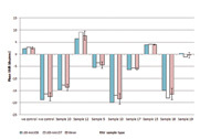 An example of the type of data obtained on the SAW device is shown below (see two separate data charts). These proved that the SAW biosensor technology can provide accurate results in around 10 minutes, had good levels of diagnostic sensitivity for the three test viruses (total 93% when compared to the HPA lab-based PCR method, the ‘gold standard’ for respiratory testing) and did not give false positives, showing 100% specificity even when other viral analytes were present.