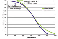 [caption id="attachment_35031" align="alignleft" width="200" caption="Figure 1: Individually synthesised oligonucleotide capture probes yield high coverage. The data show that 1,000 individually synthesised oligonucleotides targeting a 133kb region provided greater coverage than array/RNA baits."]