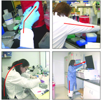 Keeping good posture is essential to safe pipetting practices; avoid excessive wrist flexion or extension, awkward neck positions or slouching forward over your desk. In order to help avoid these positions adjust your chair to ensure a good fit and practice good posture, organise your work area to make sure that everything you need is in reaching distance without having to over stretch. Also try keeping your elbows close to your body to prevent your shoulders from elevating and keep your wrists in a neutral position.