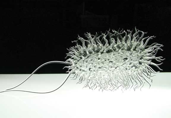 Luke Jerram is an artist who has created sculptures of E. coli and viruses – including swine flu, HIV and smallpox – from glass. These sculptures have been on display at the Wellcome Trust and the Smithfield Gallery, and are currently on display at the Courtauld Institute in London