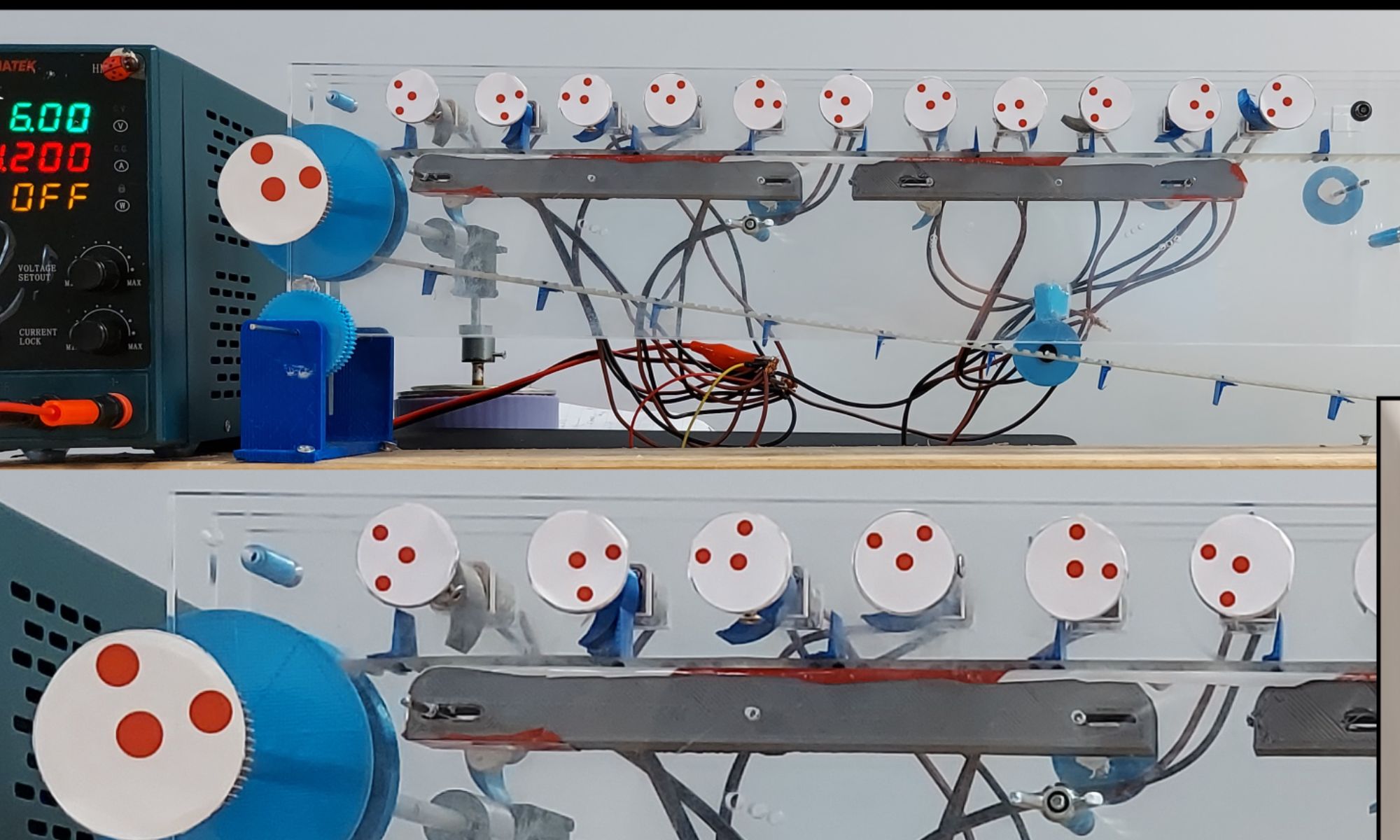 Their experimental model arranged electric motors to resemble muscle proteins in an actomyosin-like configuration, used along with 3D-printed plastic components and laser-cut acrylic.